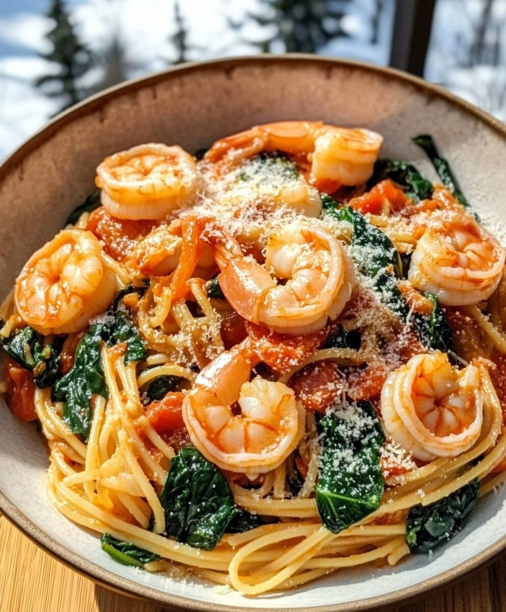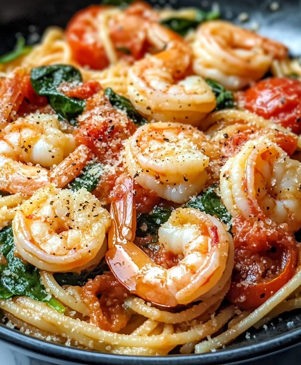 Tomato Spinach Shrimp Pasta